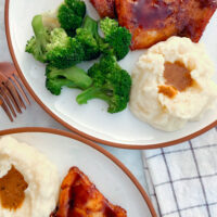 We had leftover mashed potatoes and broccoli so that is what I served it with but if I don’t have leftover veggies I love serving it with my garlicky green beans!