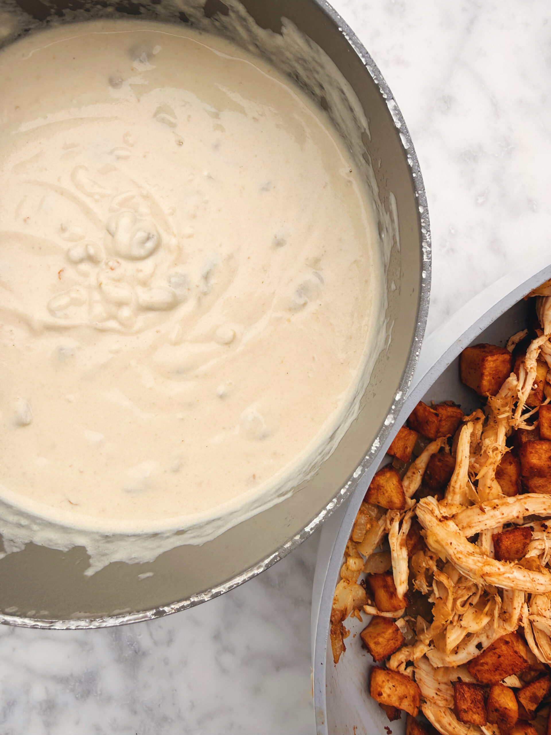 What I really wanted to put my attention on is this homemade sour cream sauce! You could just make this sauce and dip chips in it if you wanted to , that’s how decadent this sauce is (and I would 100% approve).