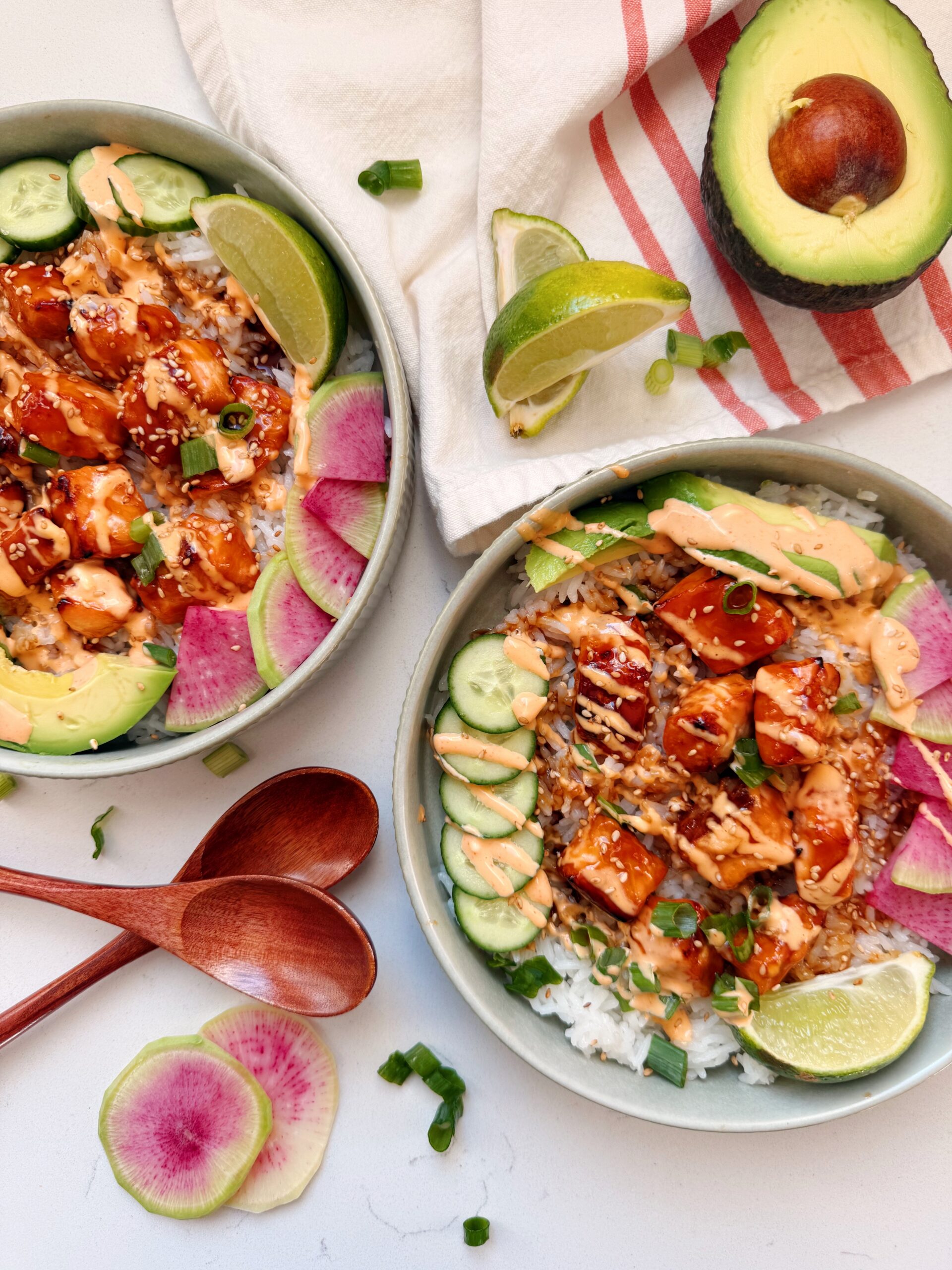 These Teriyaki Salmon Bowls are about to be your new weeknight hero! Glossy, caramelized salmon! Fluffy rice! A creamy sriracha mayo! Done in about 30 minutes, start to finish. The magic here is in the layering. The teriyaki glaze bakes with the salmon, with extra drizzled on top. The sriracha mayo takes about 90 seconds […]